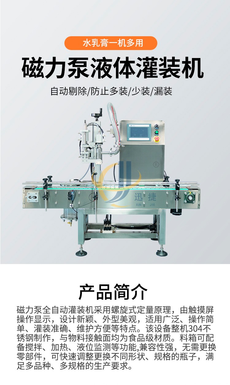 磁力泵全自動(dòng)灌裝機(jī)采用螺旋式定量原理,由觸摸屏操作顯示,設(shè)計(jì)新穎、外型美觀,適用廣泛、操作簡(jiǎn)