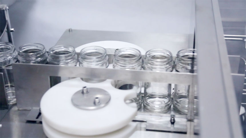 設(shè)備介紹:醬類灌裝線配套廣口玻璃瓶洗瓶機(jī)具有性能可靠、操作簡(jiǎn)單、清洗效果良好、工作效率高等特點(diǎn),主要由不銹鋼水泵、高壓噴頭、電器箱等組成。它的工作原理是先將需要清洗的瓶子裝進(jìn)瓶盤(pán)內(nèi),然后人工送入工位,通過(guò)循環(huán)水噴將需要清洗的瓶子注滿水沉至清洗槽先進(jìn)行簡(jiǎn)單的粗洗。然后瓶子會(huì)上升推進(jìn)洗瓶機(jī)的第二工位,在第二工位會(huì)進(jìn)行三次仔細(xì)的清洗,在經(jīng)過(guò)三次氣沖、甩干,再自動(dòng)進(jìn)入到滅菌烘箱。清洗過(guò)程為粗洗一次,仔細(xì)清洗三次,然后是烘干。